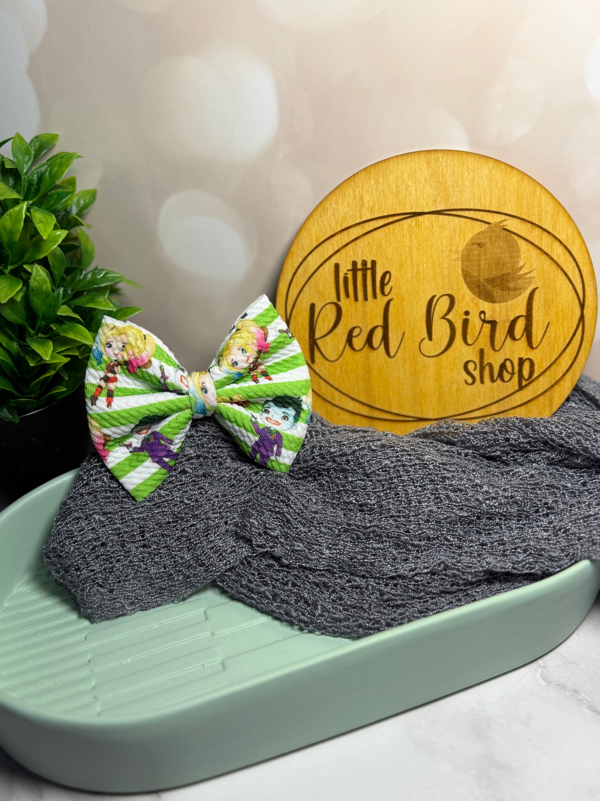 Bows come finished on a 3inch clip or nylon. Piggies come permanently finished with a 1.75inch clip or available on nylon if noted. Headwraps are 5-inch bows, hand tied. Please take note, products are handmade and may show minor imperfections. Colors and shades may be slightly than they appear. Accessories are hazards! Never leave your child unattended while wearing any kind of accessory.