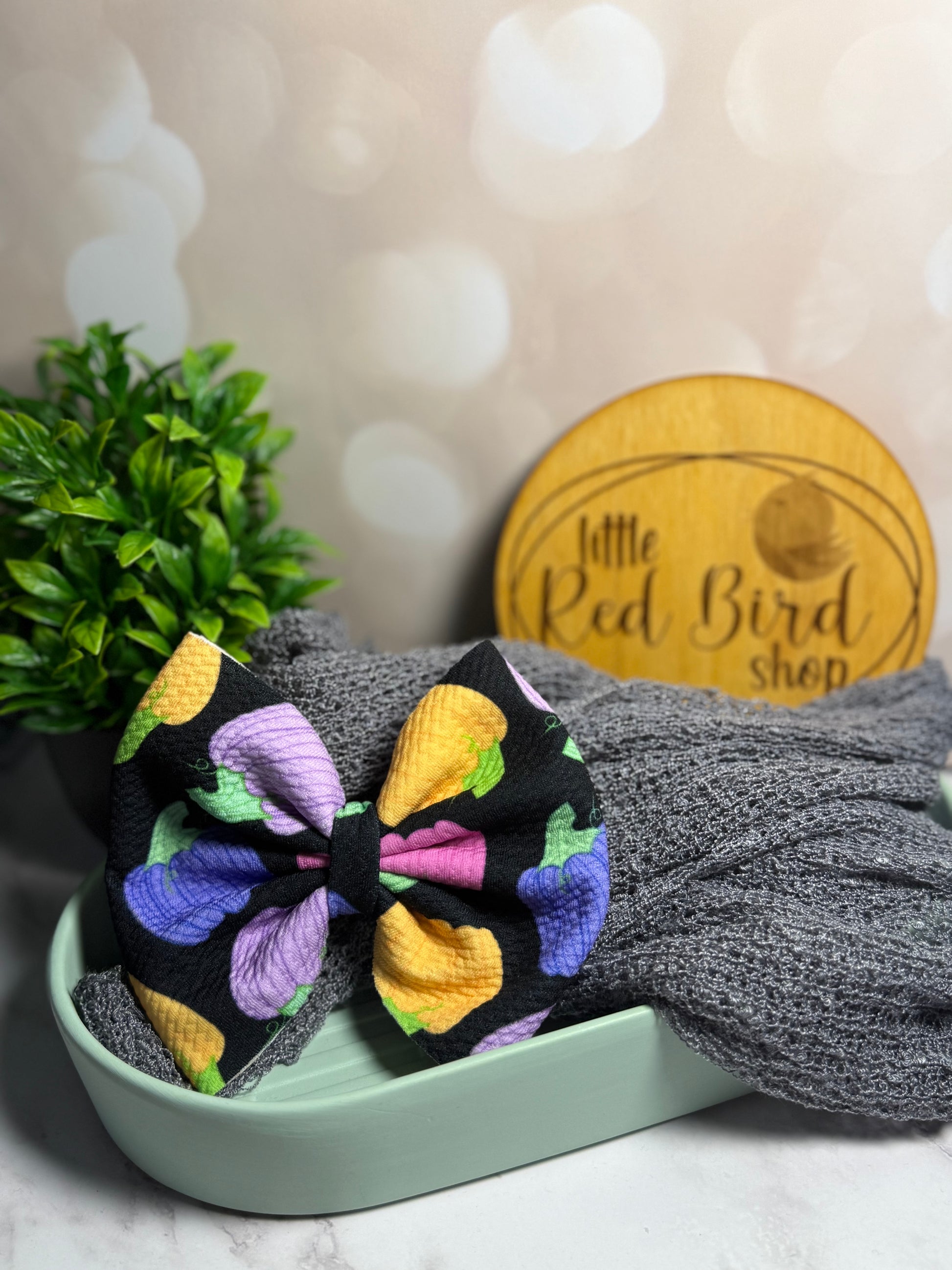 Bows come finished on a 3inch clip or nylon. Piggies come permanently finished with a 1.75inch clip or available on nylon if noted. Headwraps are 5-inch bows, hand tied. Please take note, products are handmade and may show minor imperfections. Colors and shades may be slightly than they appear. Accessories are hazards! Never leave your child unattended while wearing any kind of accessory.