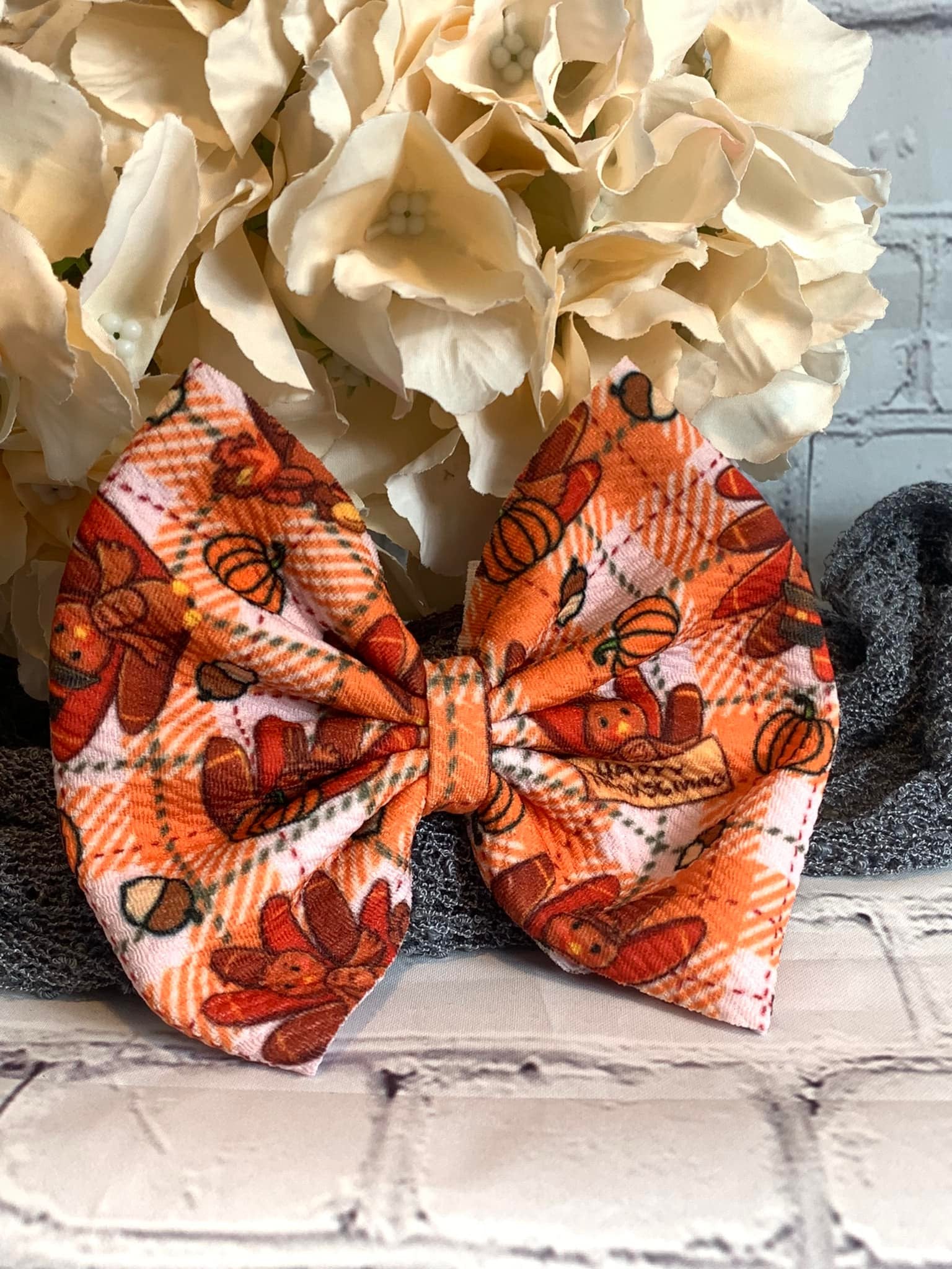 Bows come finished on a 3inch clip or nylon. Piggies come permanently finished with a 1.75inch clip or available on nylon if noted. Headwraps are 5-inch bows, hand tied. Please take note, products are handmade and may show minor imperfections. Colors and shades may be slightly than they appear. Accessories are hazards! Never leave your child unattended while wearing any kind of accessory.